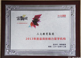 工大教育凭借卓越的教学成绩和良好的社会口碑,从数百家参评教育公司中脱颖而出,荣易中国网“最具影响力教育品牌” 教育大奖。